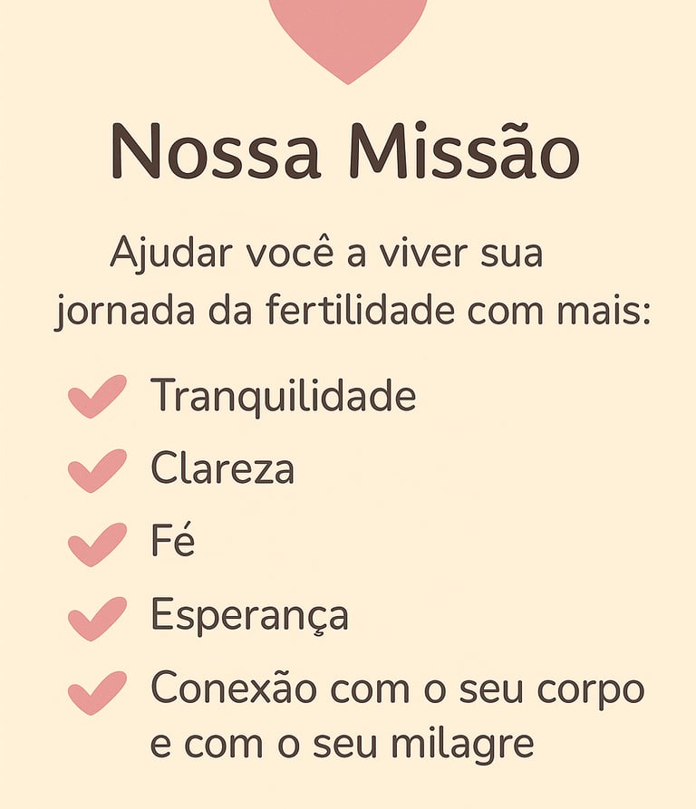 “Um espaço criado para oferecer serenidade, inspiração e apoio emocional para mulheres que desejam viver a jornada da fertilidade com mais leveza, fé e esperança.”